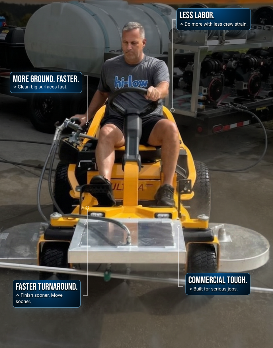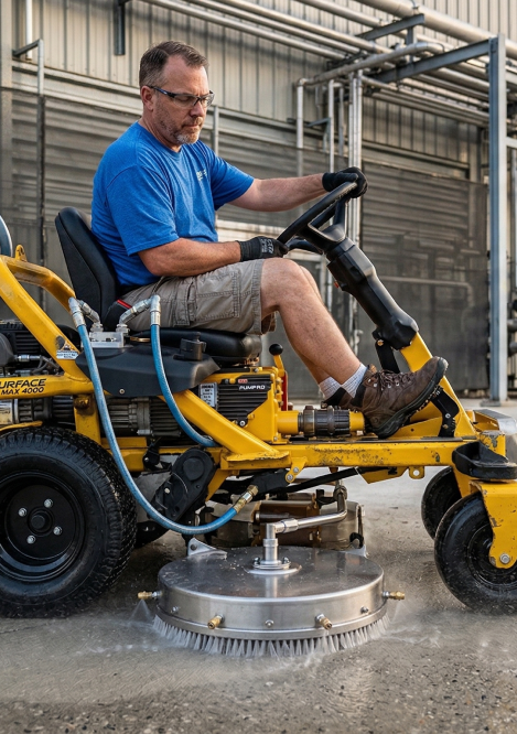 It’s best for larger flatwork and commercial surface cleaning where speed and production really matter. The bigger the surface, the more important efficiency becomes.